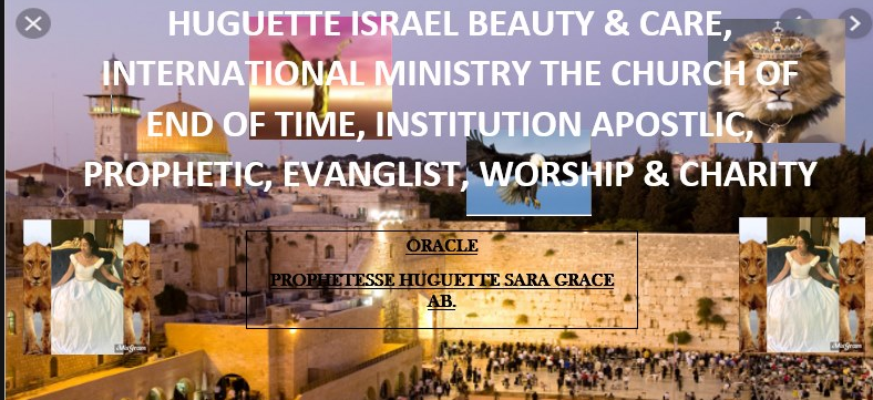COME WORSHIP THE LORD JESUS CHRIST, GODS GOING TO VISIT YOU AND CHANGE YOUR LIFE. HUGUETTE ISRAEL BEAUTY & CARE, INTERNATIONAL MINISTRY THE END OF TIME. APOSTAL PROPHETICY & EVANGELIST. MAY GOD BLESS YOU IN THE NAME OF JESUS CHRIST OF NAZARETH.